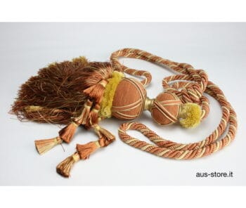 Bracciale porta embrasse con fiocco decorativo di fattura straordinaria realizzati da azienda manifatturiera spagnola. Ideale per dare un tocco di classe alla vostra casa raccogliendo in modo elegante le vostre tende. Dimensioni fiocco H cm 30, diametro cm 9. Misura bracciali Cm 50.